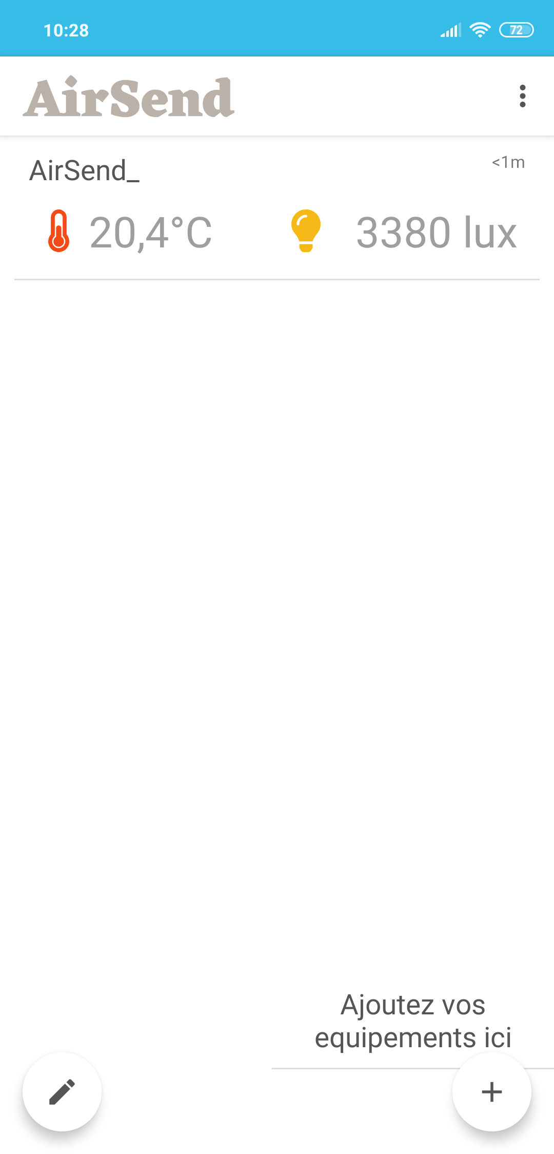 On se retrouve donc sur l’interface principale. Dessus, par défaut, on y retrouve la température et la luminosité prise grâce aux capteurs intégrés sur le boitier.