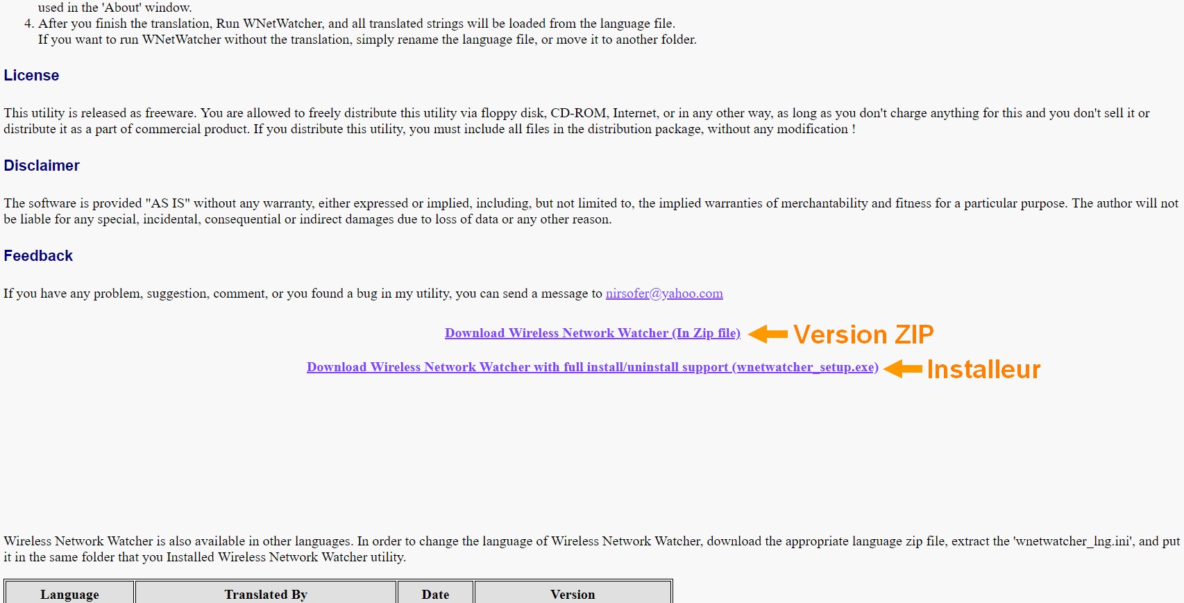 • WNetWatcher.chm : Fichier HTML compressé faisant office de documentation (même documentation que sur le site officiel)